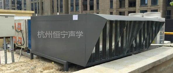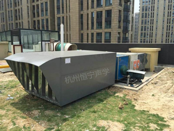 項(xiàng)目位於石祥路的中鐵國際城商場四樓屋頂,為三樓餐飲廚房排(pái)油煙風機,風機一共三台,相互距離較遠,隻能單采取降噪措施。