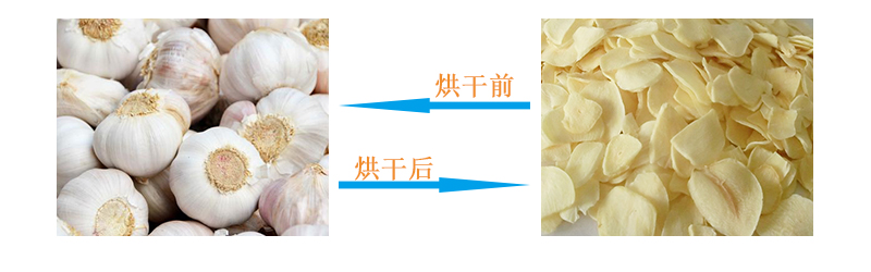 The garlic slice dryer is a drying equipment designed and produced based on the physical characteristics and dry material requirements of garlic. It consists of a drying oven, a hot air blower, and a heat exchange furnace, with all stainless steel contact parts.