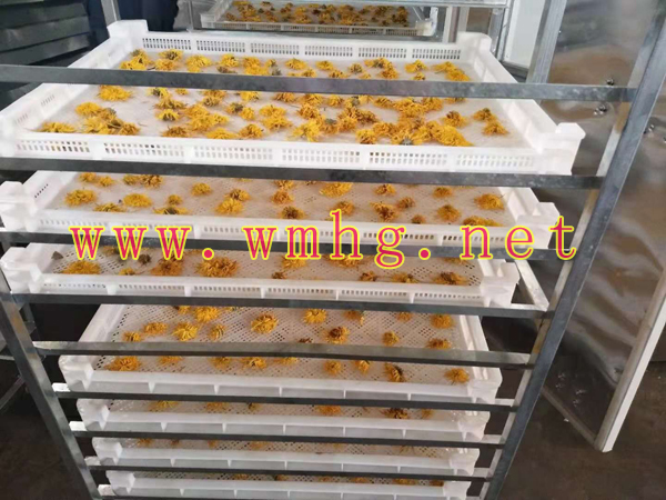采用烘幹箱烘幹出來的菊花要比翻板烘(hōng)幹箱殺青後烘幹出的(de)金銀花顏色更好看,形狀飽滿,深受諸多大型菊花種植用戶的喜愛。